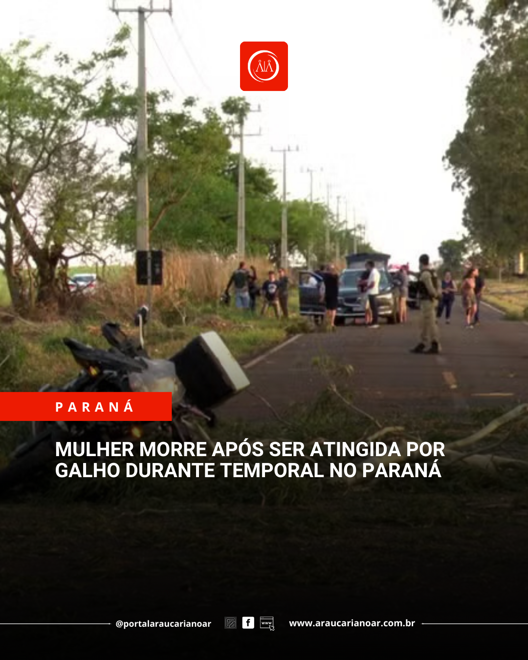 Mulher morre após ser atingida por galho durante temporal no Paraná