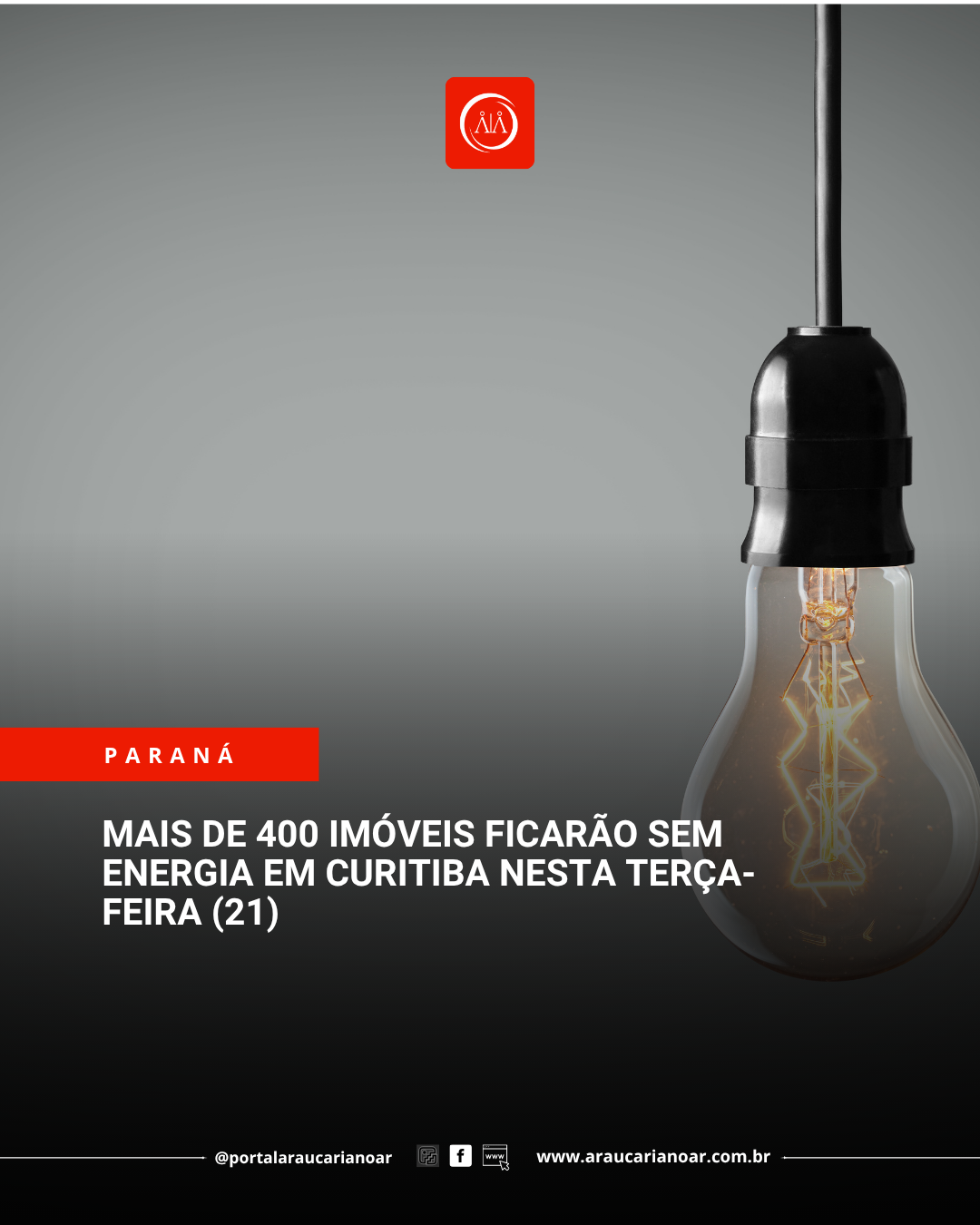 Mais de 400 imóveis ficarão sem energia em Curitiba nesta terça-feira (21)