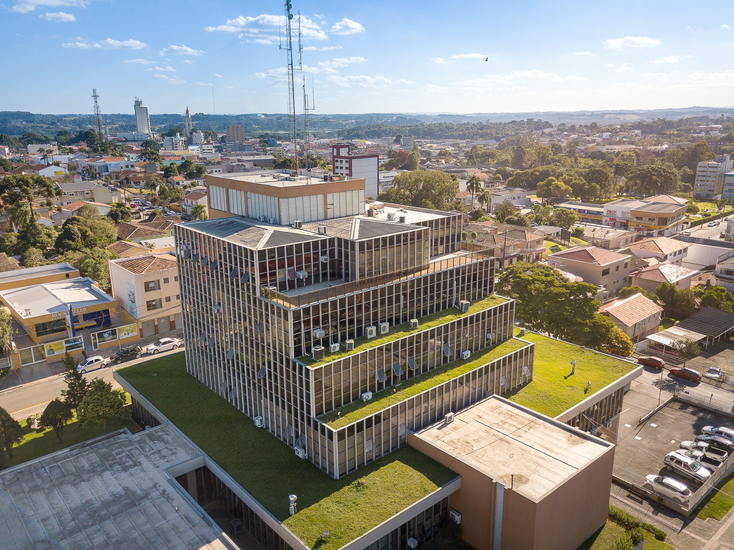 #PraTodosVerem: A imagem relacionada a esta notícia mostra, em destaque o prédio da Prefeitura de Araucária. Trata-se de uma imagem aérea.
