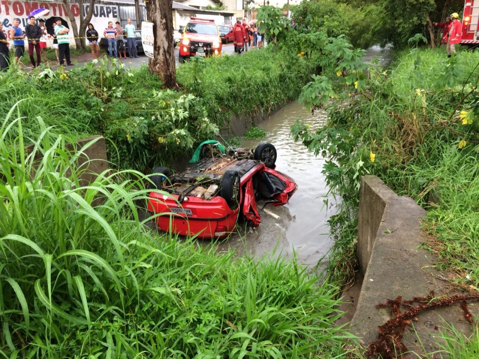A colisão aconteceu no cruzamento da Rua Francisco Ferreira de Souza com a Evaristo da Veiga. “Com o impacto, o automóvel foi parar no rio e ficou enroscado em algumas pedras. A mulher que estava no veículo foi retirada do canal com a ajuda de moradores a uns 800 metros do local do acidente”, explicou o tenente Gustavo Zanella, do CB, em entrevista à Banda B. Chovia forte na hora do acidente.