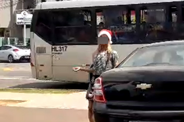 Na frente da Central de Flagrantes, a reportagem da Banda B conversou com a travesti que seria a pivô do desentendimento. Ela usava um gorro de Papai Noel.