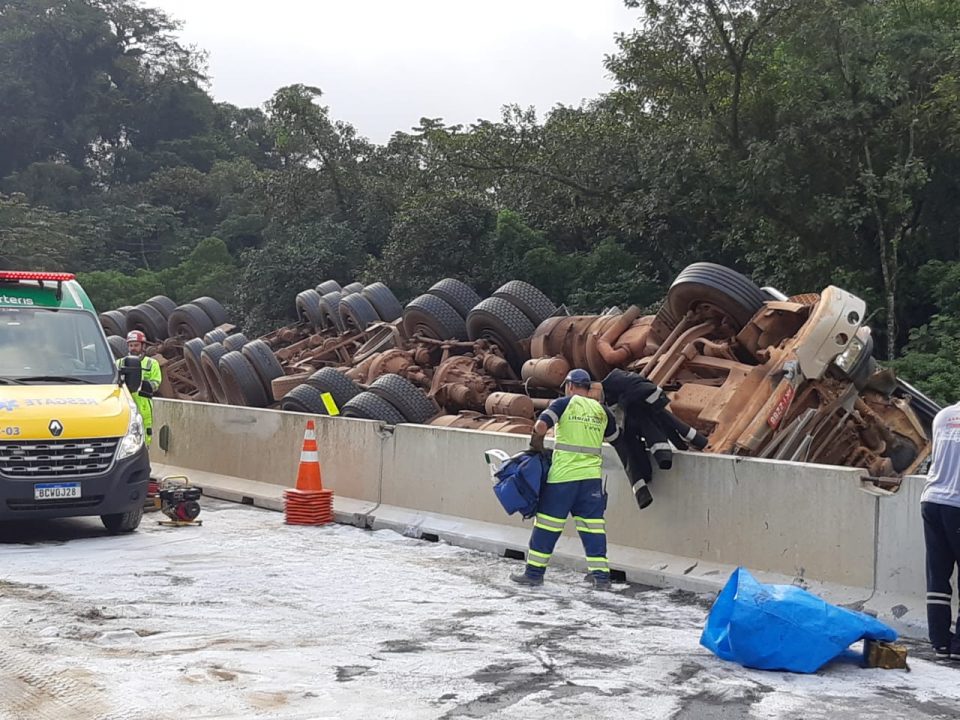 Um caminhão sem freio bateu em dois carros e depois capotou na descida da Serra do Mar da BR-376, em Guaratuba, no litoral do Paraná, na tarde deste domingo (5). Quatro pessoas ficaram feridas, sendo que o motorista do caminhão foi encaminhado ao hospital em estado grave.