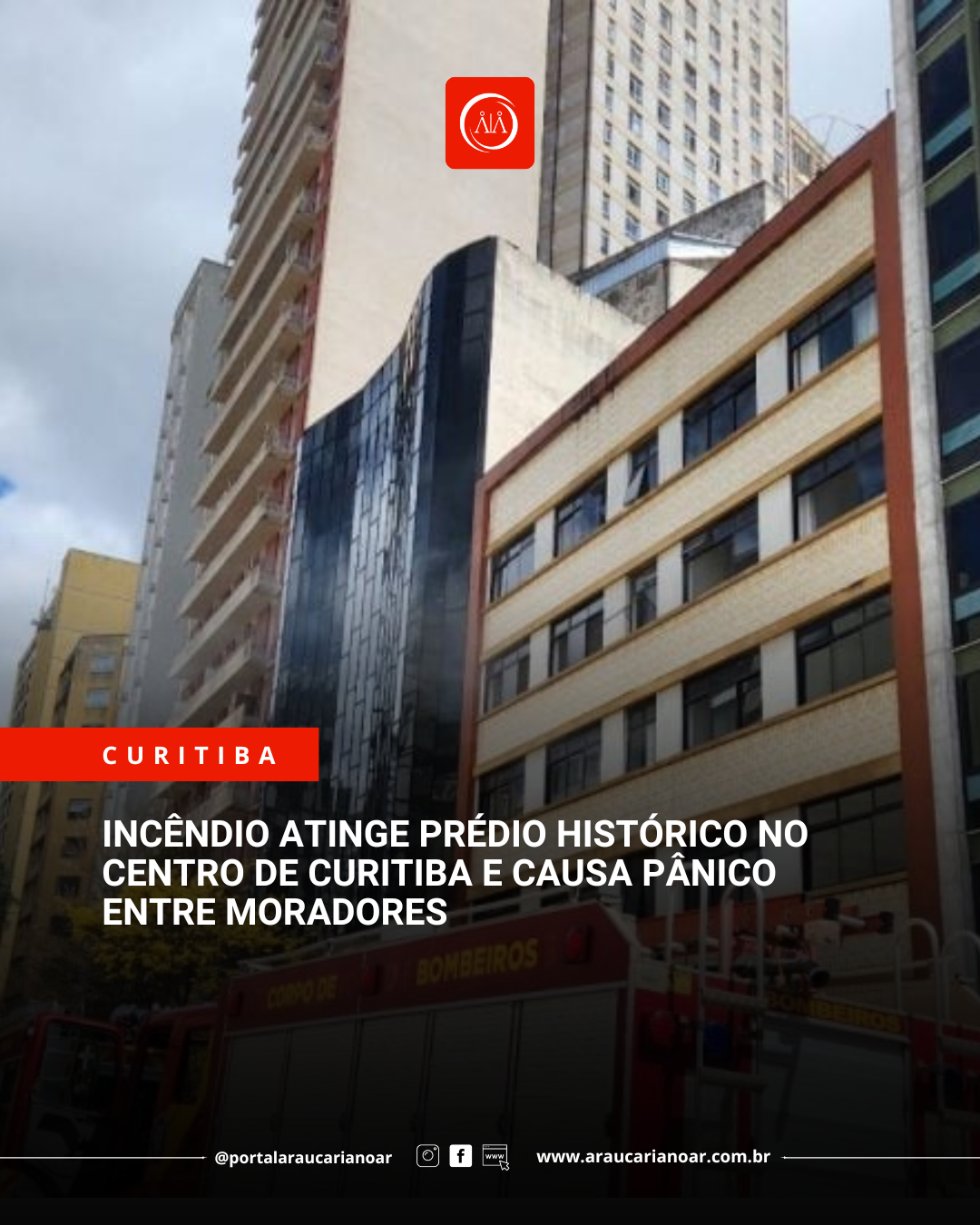 Incêndio atinge prédio histórico no Centro de Curitiba e causa pânico entre moradores