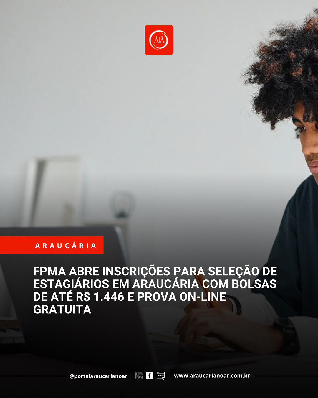 FPMA abre inscrições para seleção de estagiários em Araucária com bolsas de até R$ 1.446 e prova on-line gratuita