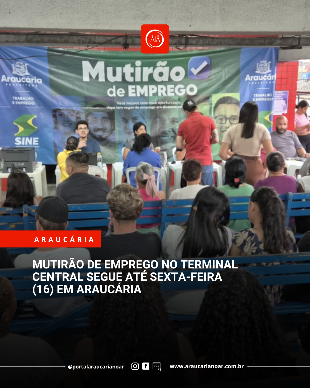 Mutirão de Emprego no Terminal Central segue até sexta-feira (16) em Araucária