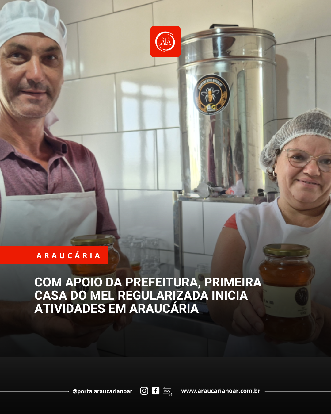 A última sexta-feira (16) marcou um momento histórico para a agricultura familiar de Araucária. A família Deda, moradora da região do Guajuvira de Cima, comemorou o início das atividades da primeira Casa do Mel regularizada no município, viabilizada por meio da lei municipal nº 4.267/2023. O processo foi acompanhado de perto pela equipe técnica do Serviço de Inspeção Municipal (SIM), vinculado à Secretaria Municipal de Agricultura (SMAG).