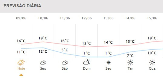 Segundo dados do Instituto Nacional de Meteorologia (Inmet), a chegada de uma massa de ar de origem polar vai derrubar as temperaturas na região. “No domingo (12), há chance de geada no oeste, norte e serras do Rio Grande do Sul, sul do Paraná e em praticamente todo o estado de Santa Catarina, com exceção do litoral. Geadas de menor intensidade ainda vão afetar o centro-norte do Paraná e o sul de São Paulo e do Mato Grosso do Sul”, diz o informe.