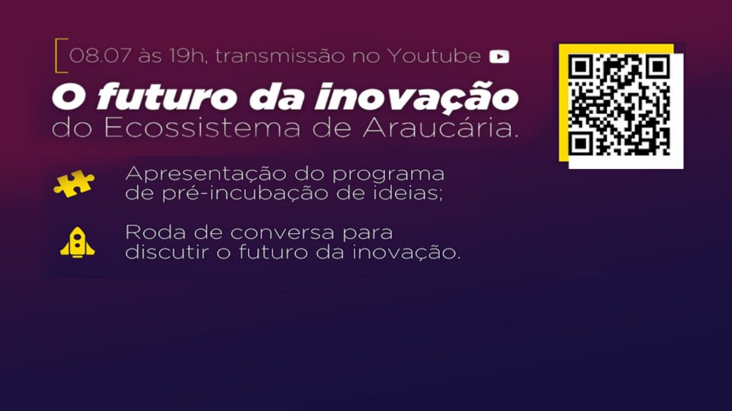 O Departamento de Desenvolvimento Econômico de Araucária convida micro e pequenos empresários da cidade a participar de um evento on-line para entender um pouco mais sobre o Programa de Pré-Incubação de Araucária. O debate “O futuro da inovação do Ecossistema de Araucária” ocorrerá nesta quinta-feira (08), com transmissão pelo youtube (INSCRIÇÕES LIVE CLIQUE AQUI), início às 19h. Diversos convidados das áreas de tecnologia, desenvolvimento econômico e sustentável, empreendedorismo, inovação e gestão financeira irão participar da roda de conversa para esclarecer as dúvidas dos participantes e apresentar melhor o programa.