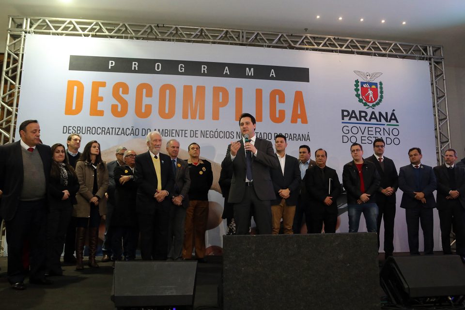 O programa “Descomplica ” que visa reduzir a burocracia no Estado e simplificar a abertura de novas empresas foi lançado, nesta quarta-feira (14), pelo governado Ratinho Junior, no Palácio Iguaçu. A iniciativa envolve a Junta Comercial, a Secretaria da Fazenda, Corpo de Bombeiros, Vigilância Sanitária, Instituto Ambiental do Paraná, Celepar e o Sebrae.