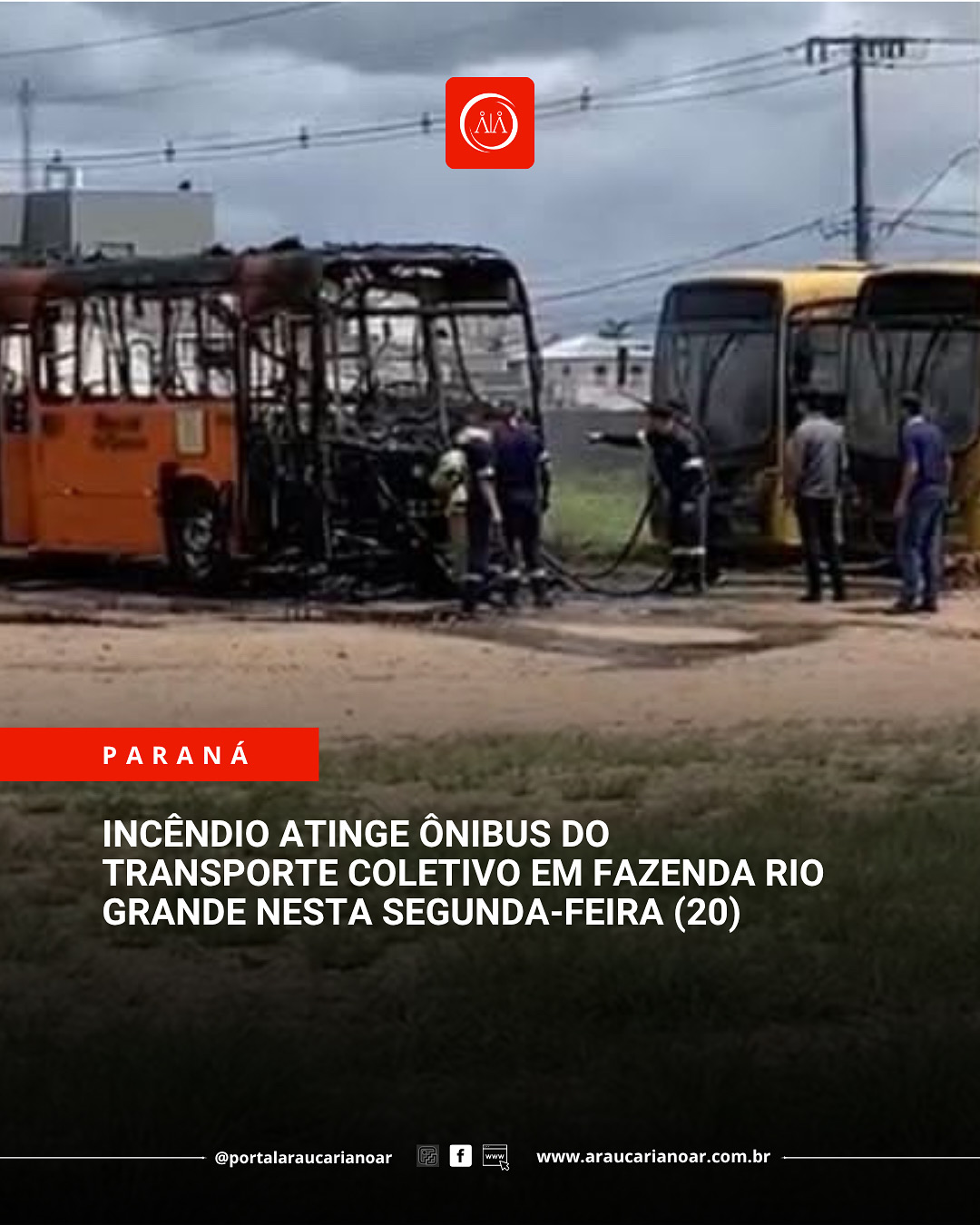 Um incêndio atingiu três ônibus do transporte coletivo no início da tarde desta segunda-feira (20) em uma garagem de empresa responsável pelo transporte público de Fazenda Rio Grande, na Região Metropolitana de Curitiba. O caso aconteceu no bairro Pioneiros e mobilizou equipes do Corpo de Bombeiros.
