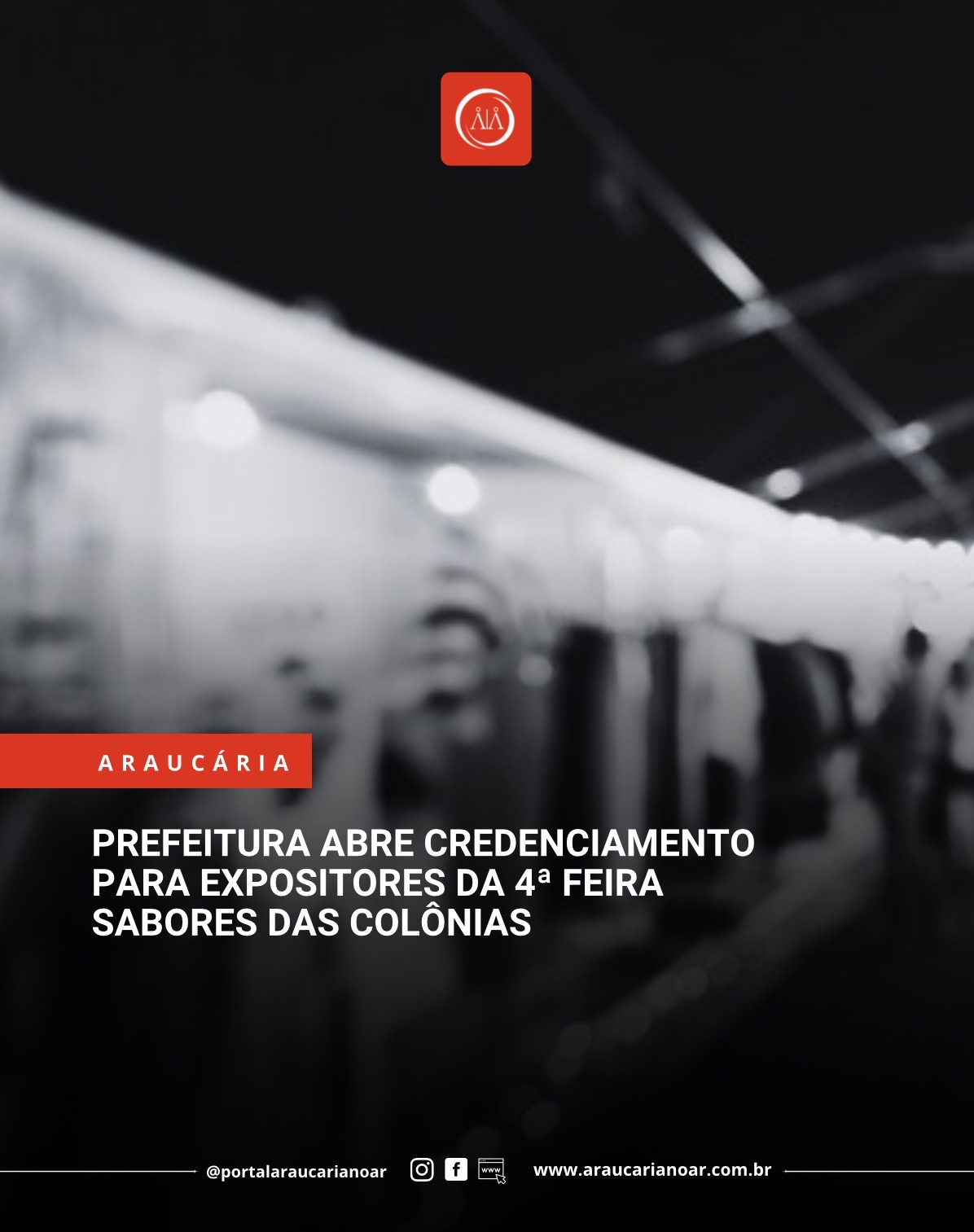 Prefeitura de Araucária abriu, nesta quinta-feira (13), o credenciamento para venda de produtos durante a 4ª Feira Sabores das Colônias, que acontecerá entre os dias 4 e 7 de dezembro, no Parque Cachoeira.