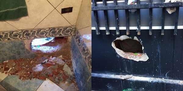 Policiais da delegacia de Fazenda Rio Grande, na região metropolitana de Curitiba, impediram uma nova fuga dos detentos na madrugada desta segunda-feira (15). Sete presos, que estavam custodiados dentro de um dos banheiros do local, conseguiram abrir um buraco em uma das paredes, mas foram contidos no momento da fuga por um agente que estava de plantão. Ninguém escapou.