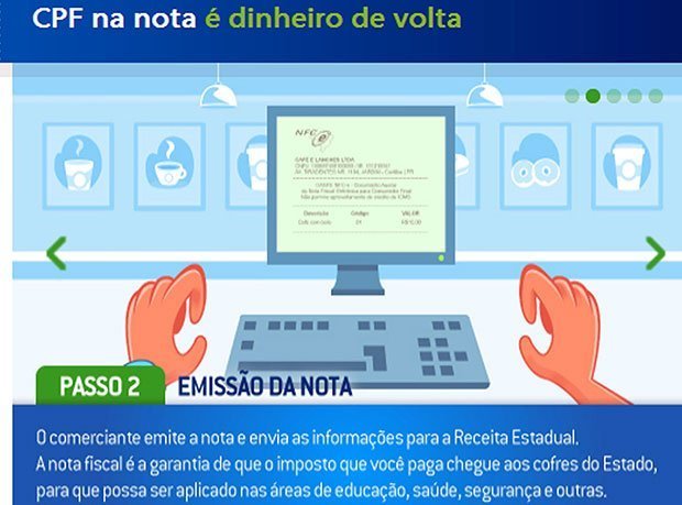O Nota Paraná devolverá ao consumidor que exigir o CPF na nota 30% do ICMS efetivamente recolhido pelos estabelecimentos comerciais. Essa devolução virá em forma de crédito que vão se acumulando. Na segunda quinzena de novembro, os participantes do programa poderão visualizar no site www.notaparana.pr.gov.br os créditos que acumularam em compras feitas em agosto.