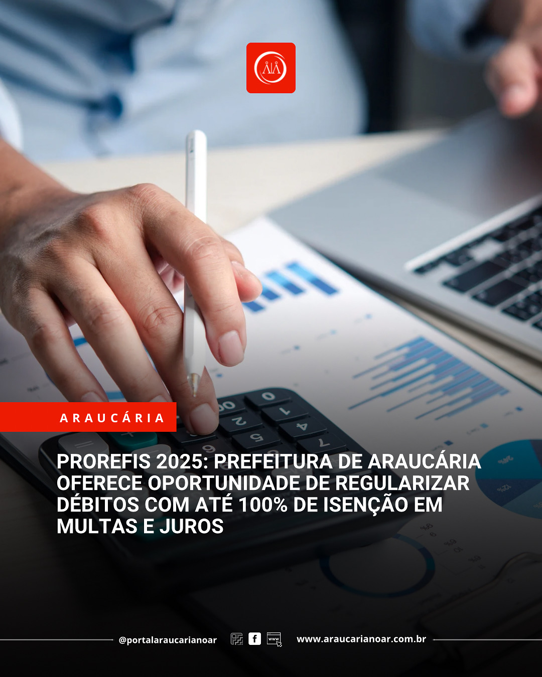 De 3 de novembro de 2025 a 30 de janeiro de 2026, a Prefeitura de Araucária, por meio da Secretaria Municipal de Finanças (SMFI), abre o Programa de Recuperação Fiscal de Créditos Tributários e Não Tributários (PROREFIS). A iniciativa permite que contribuintes regularizem débitos municipais com descontos que podem chegar a 100% sobre multas e juros, dependendo da forma de pagamento.