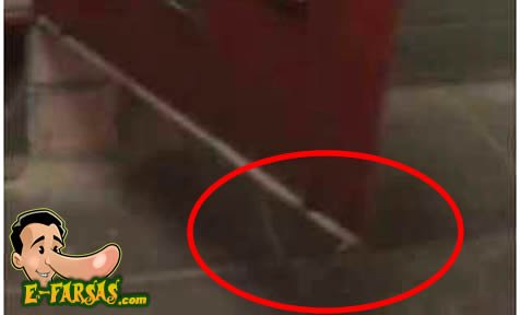 O site revela que por volta do 1 minuto e 45 é possível ver uma linha amarrada na parte inferior da porta. “Os fãs da nossa página no Facebook também deram suas contribuições para a elucidação desse caso. O leitor Alberto Albuquerque, por exemplo, percebeu que uma das portas estava aberta quando o vigia estava indo em direção ao “fantasma” e se fechou quando o homem da lanterna estava voltando”, diz a publicação no E-Farsas. “Além disso, o comportamento dos presentes na cena é muito estranho. O vigia caminha em direção ao barulho com o foco da lanterna apontando para a parede oposta a da porta da mangueira de incêndio. Quando as luzes se apagam (convenientemente), as “testemunhas” continuam calmos e tranquilos (sem sustos nem nada). Perceba que a lanterna continua clareando a parede oposta”, observa o site.