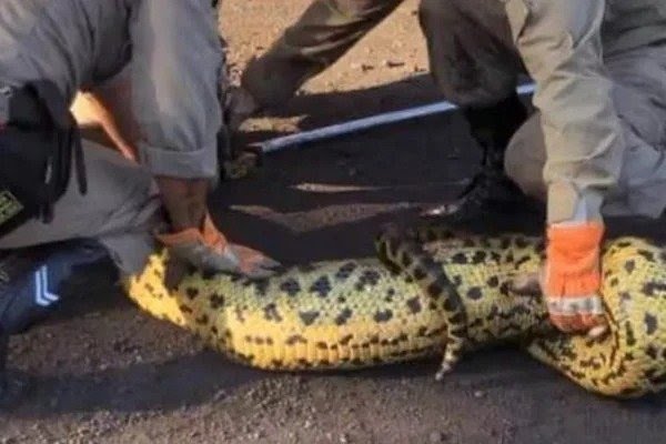O Corpo de Bombeiros de Mato Grosso do Sul capturou uma sucuri de 4 metros logo após a serpente devorar um cachorro, na manhã do sábado (30/4), na área de uma empresa siderúrgica, em Corumbá, região do Pantanal. Um vídeo registrou a operação.