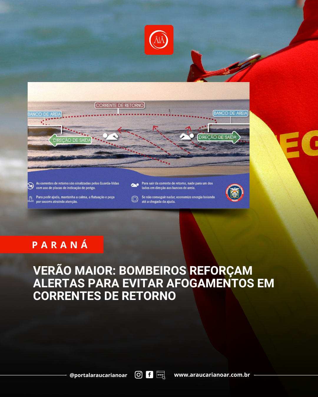 Se souber boiar, permanecer flutuando aumenta as chances de resgate pelos guarda-vidas. O CBMPR alerta ainda para que familiares ou outros banhistas não tentem realizar o salvamento, pois isso pode resultar em novos afogamentos. A atitude correta é acionar imediatamente um guarda-vidas ou ligar para o telefone 193.