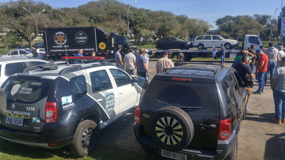 Em ato simbólico contra o sucateamento de viaturas, policiais partiram em carreata do Parque Barigui em direção ao Palácio Iguaçu para “devolver” os veículos ao governo do estado, no início da tarde desta segunda-feira (24). Pela manhã, vários setores da segurança pública do Paraná estiveram reunidos para tratar das pautas de ações em reação à negativa do governo de pagamento da Data-Base.